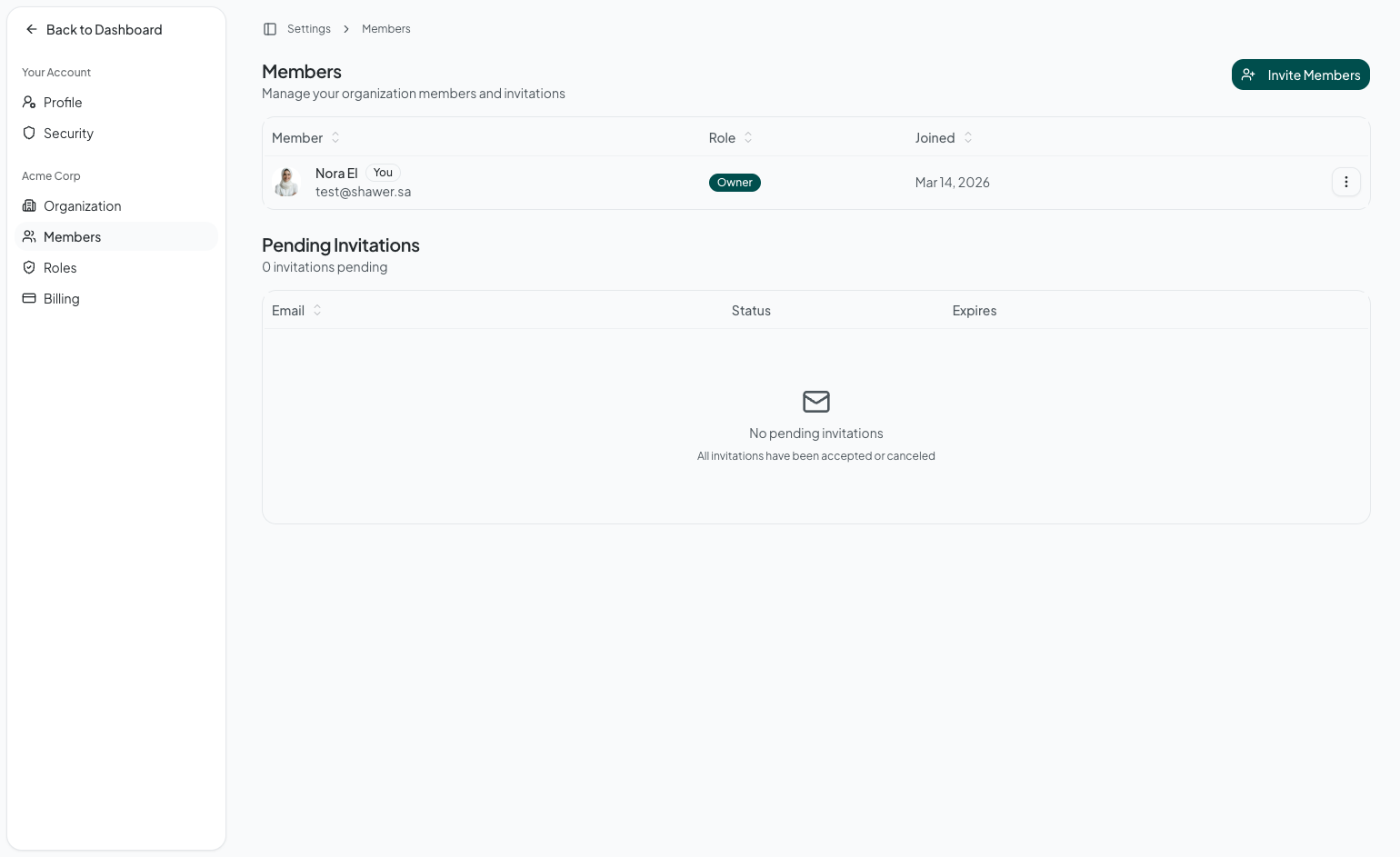 When you first set up Shawer, you can create an organization from the dashboard. Each organization has: